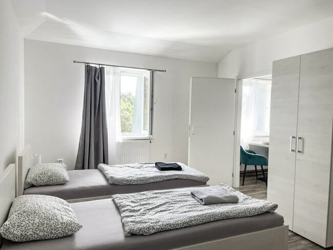 Dále pak v hostelu vícelůžkové pokoje se sdílenou kuchyní a koupelnou.